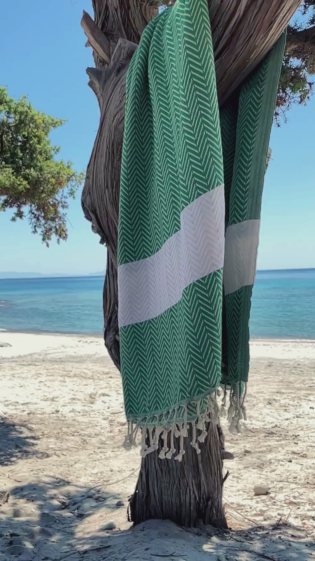 ZAYA Hammam Towel, Beach Towel, Pestemal - Green / White