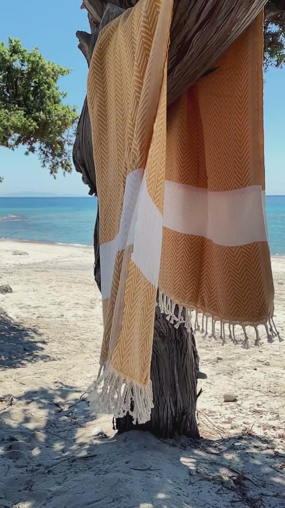 Discover the perfect blend of style and functionality with our Zaya hammam towel in Mustard and White. Crafted from 100% Oeko-Tex certified cotton, this quick-drying, lightweight, and durable accessory doubles as a beach towel, scarf, or throw. Handcrafted on Türkiye’s Aegean Coast with elegant hand-twisted fringes, it’s a chic, eco-friendly alternative to traditional terry towels.