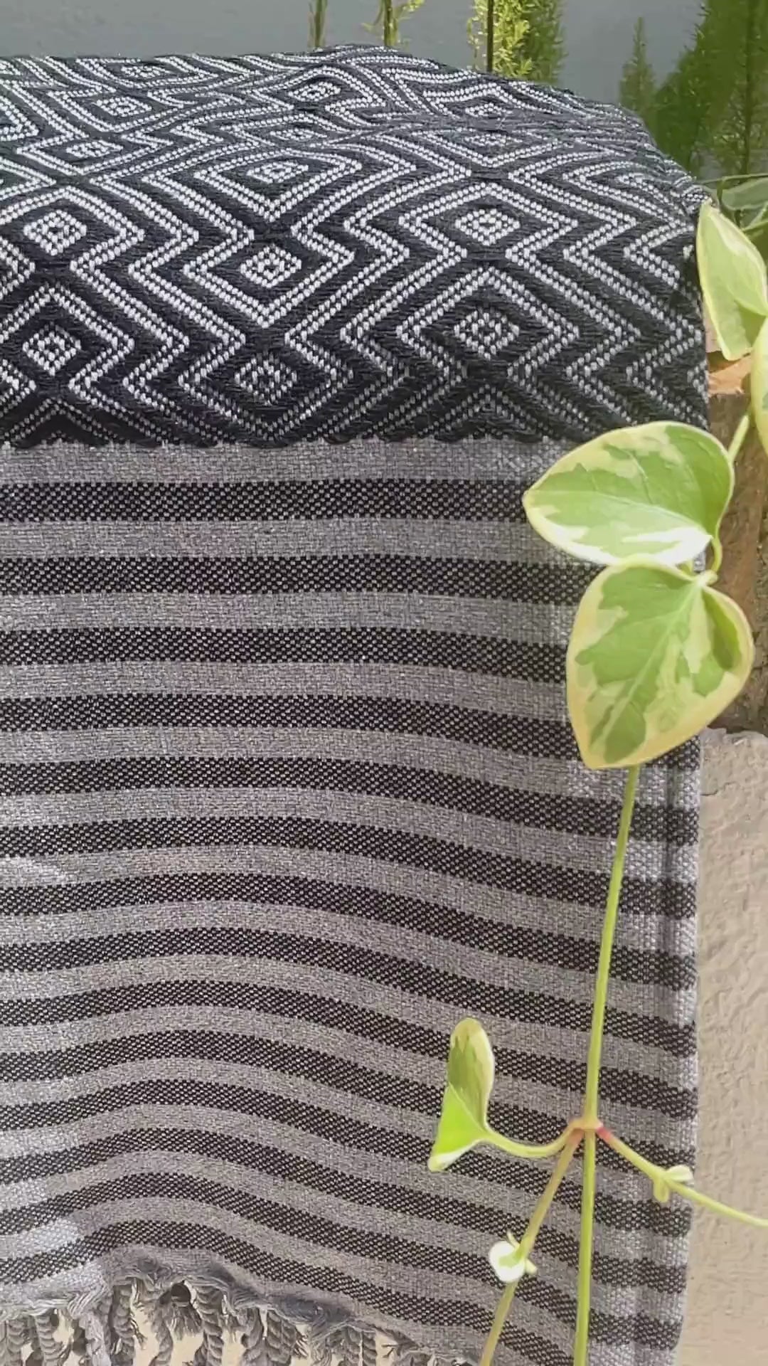 Experience the luxurious and versatile Sahara hammam towel, a sustainable alternative to traditional terry cloth, featuring a striking diamond pattern woven with vibrant hues against a deep, rich Black, defined as the absence of light, a color of timeless elegance and bold contrast. This generously sized towel, handcrafted in Türkiye's Aegean Coast, is made from 100% Oeko-Tex certified cotton, ensuring both softness and safety. Its tightly woven, quick-drying, and highly absorbent nature makes it perfect for the beach, pool, travel, or home, while its sand-resistant properties and lightweight, compact design make it exceptionally travel-friendly; the hand-twisted fringes add a touch of artisanal charm to this eco-conscious essential, perfect for use as a towel, scarf, shawl, or throw.