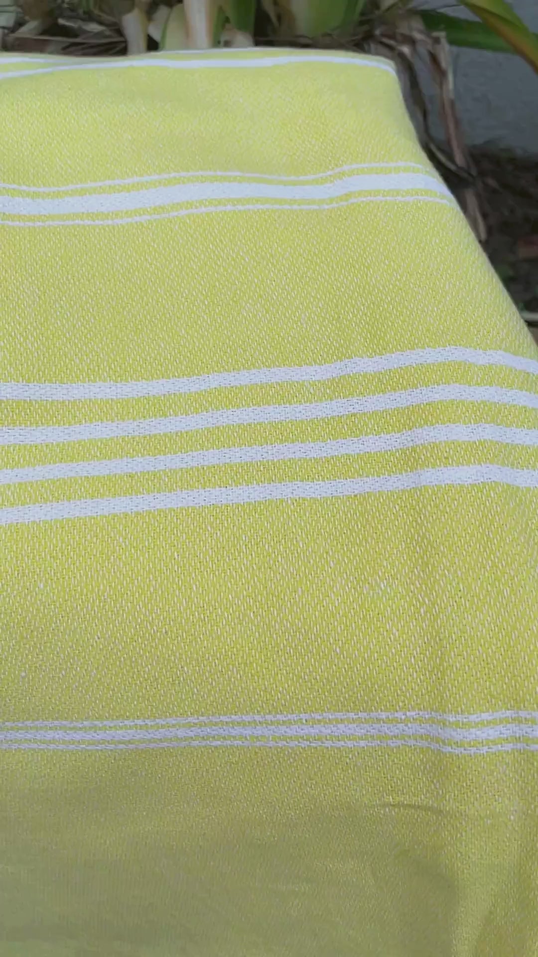This generously sized, versatile Samimi hammam towel, handcrafted on Türkiye's Aegean Coast, is a sustainable and elegant alternative to traditional towels. Its classic Turkish hammam stripe pattern, featuring a vibrant yellow, resembling the warm glow of a summer sun, is woven into 100% Oeko-Tex certified cotton, ensuring both softness and safety. Designed for ultimate comfort and functionality, this lightweight, quick-drying towel is perfect for the beach, pool, sauna, or travel, and its sand-resistant weave keeps it clean and ready for use, while hand-twisted fringes add a touch of artisanal charm.