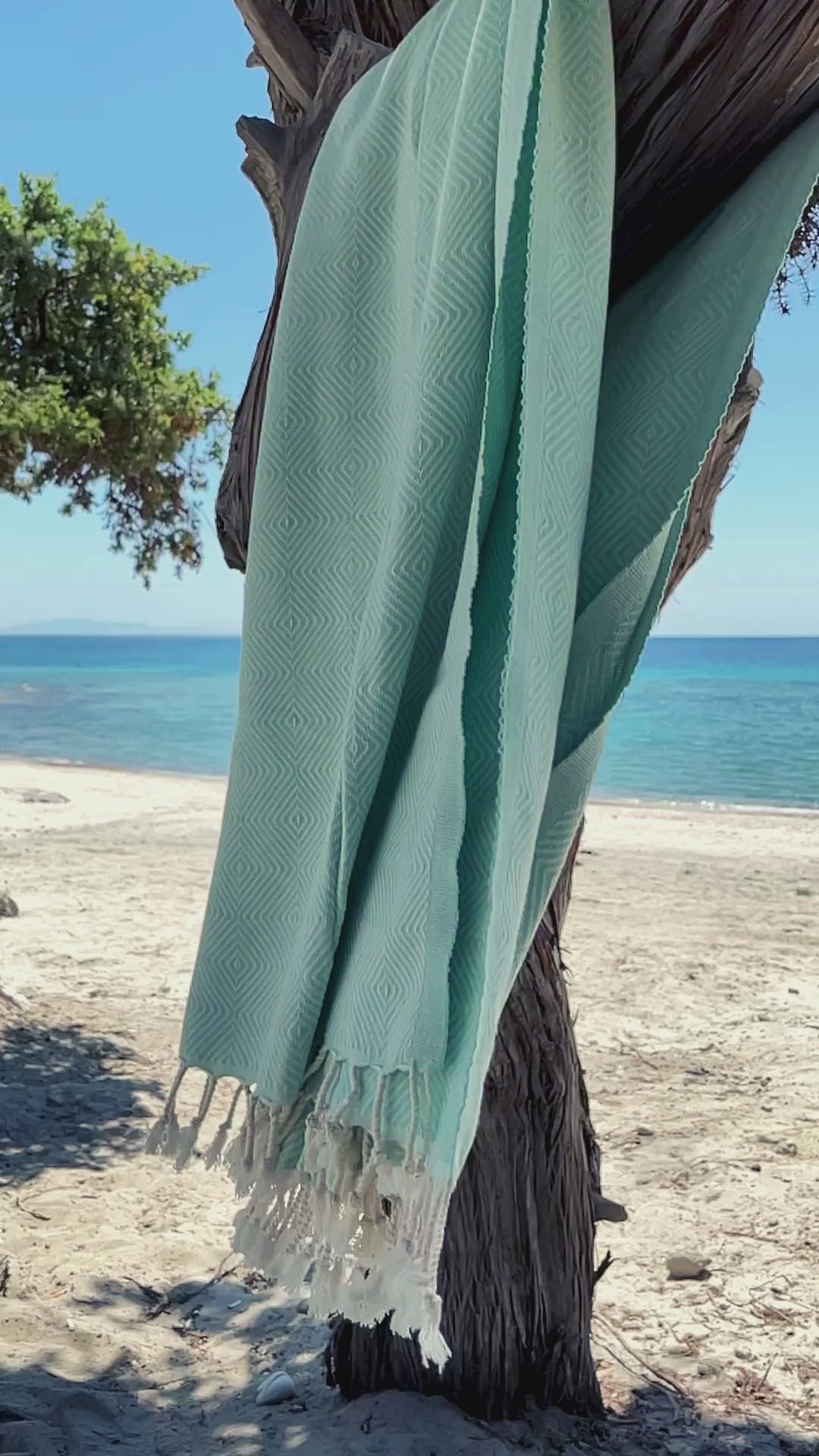 Experience the Samimi Crystal hammam towel, a versatile essential in a refreshing mint hue—a soft, pale green reminiscent of spring leaves. Perfect for beach, sauna, gym, or travel, it offers quick-dry, highly absorbent performance thanks to its 100% cotton weave. Lightweight and compact, it folds easily into any bag, while its sand-resistant feature keeps it clean. Handcrafted with intricate patterns and hand-twisted fringes on Türkiye’s Aegean Coast, it’s a versatile, eco-friendly alternative to conventional towels.