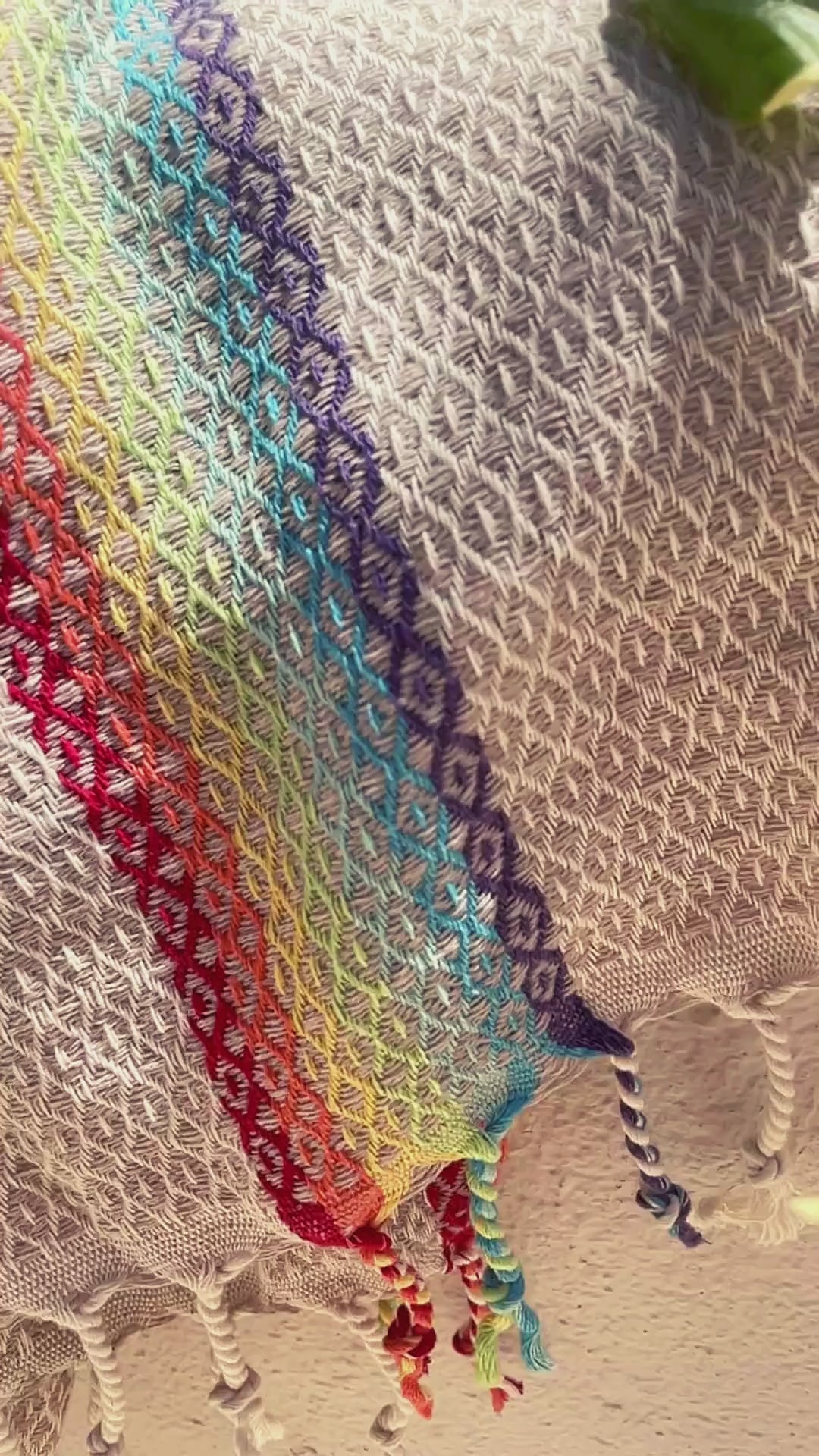 Introducing the Samimi Rainbow hammam towel, a vibrant and versatile essential, now featuring a base color of sophisticated beige—a light, neutral hue evoking natural warmth and simplicity, like sun-kissed sand. This unique towel boasts a finely woven diamond pattern accented with a striking rainbow of colored stripes, creating a cheerful and eye-catching design. Handcrafted on Türkiye’s Aegean Coast from 100% Oeko-Tex certified cotton, it's lightweight, quick-drying, and highly absorbent, perfect for beach days, travel, yoga, or as a stylish home accent. Its sand-resistant, compact design makes it an eco-friendly and practical alternative to traditional terry towels, ensuring both comfort and sustainability.